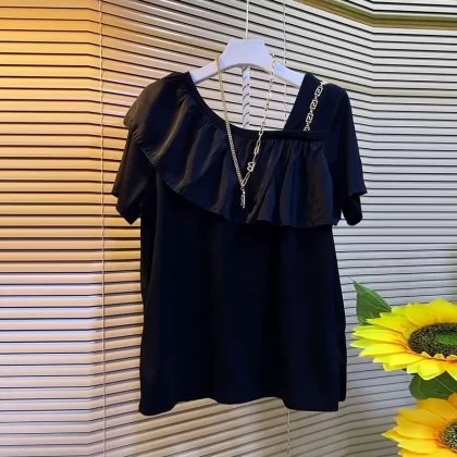 | nameOriginal | Plus fat girl's ruffled loose and versatile short sleeves |
