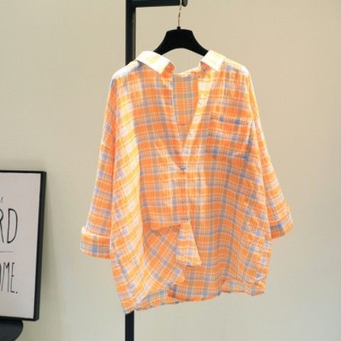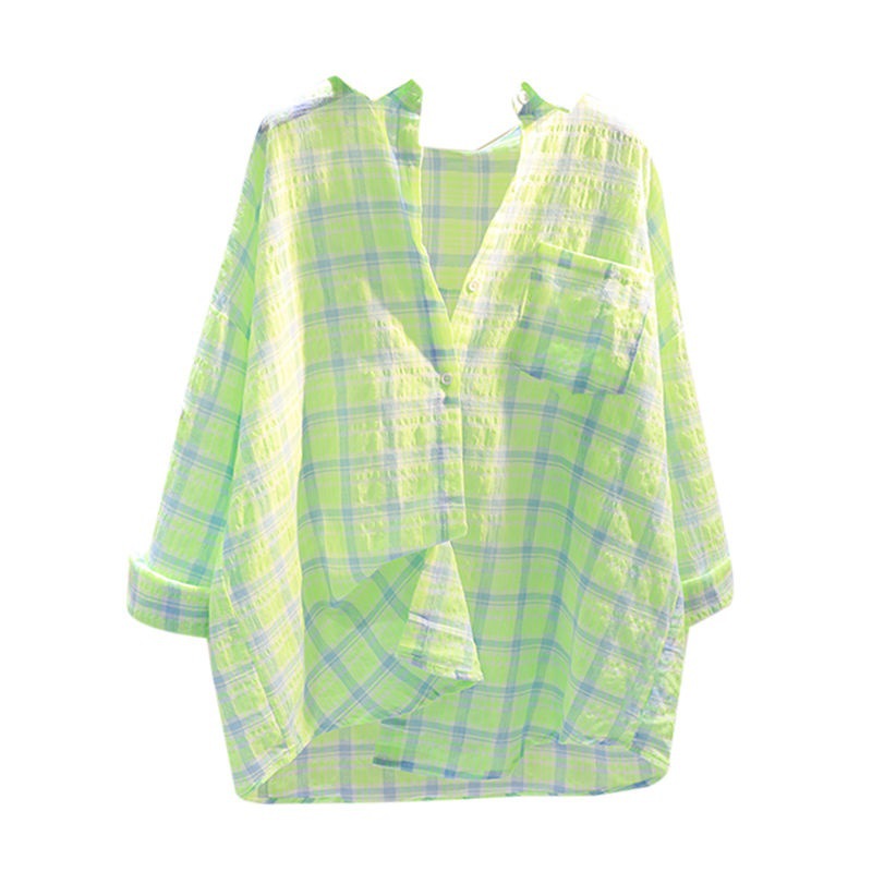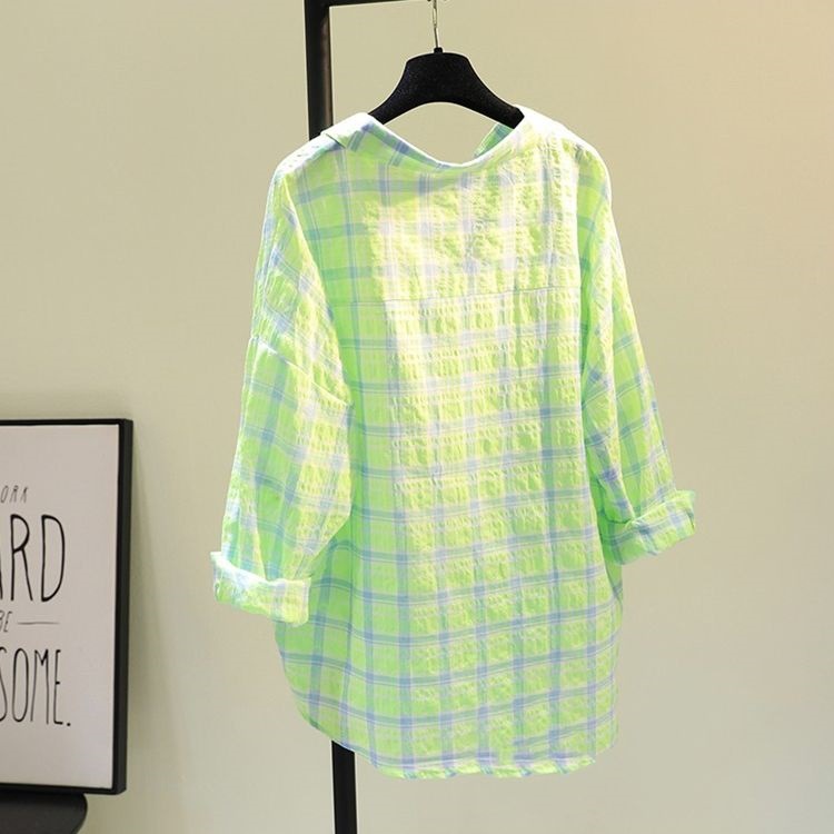 plus size 1.00 kg-150.00 kg Plaid Sun-protective Shirt Jacket Women’s Summer Thin Breathable Student Loose Design Fashionable Top Clothes
