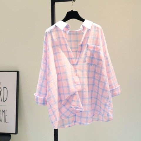 plus size 1.00 kg-150.00 kg Plaid Sun-protective Shirt Jacket Women's Summer Thin Breathable Student Loose Design Fashionable Top Clothes