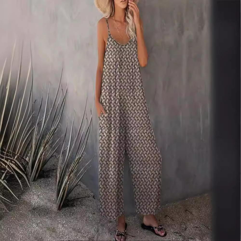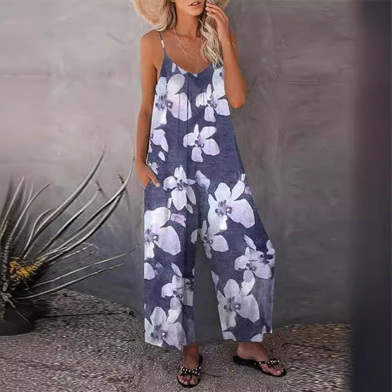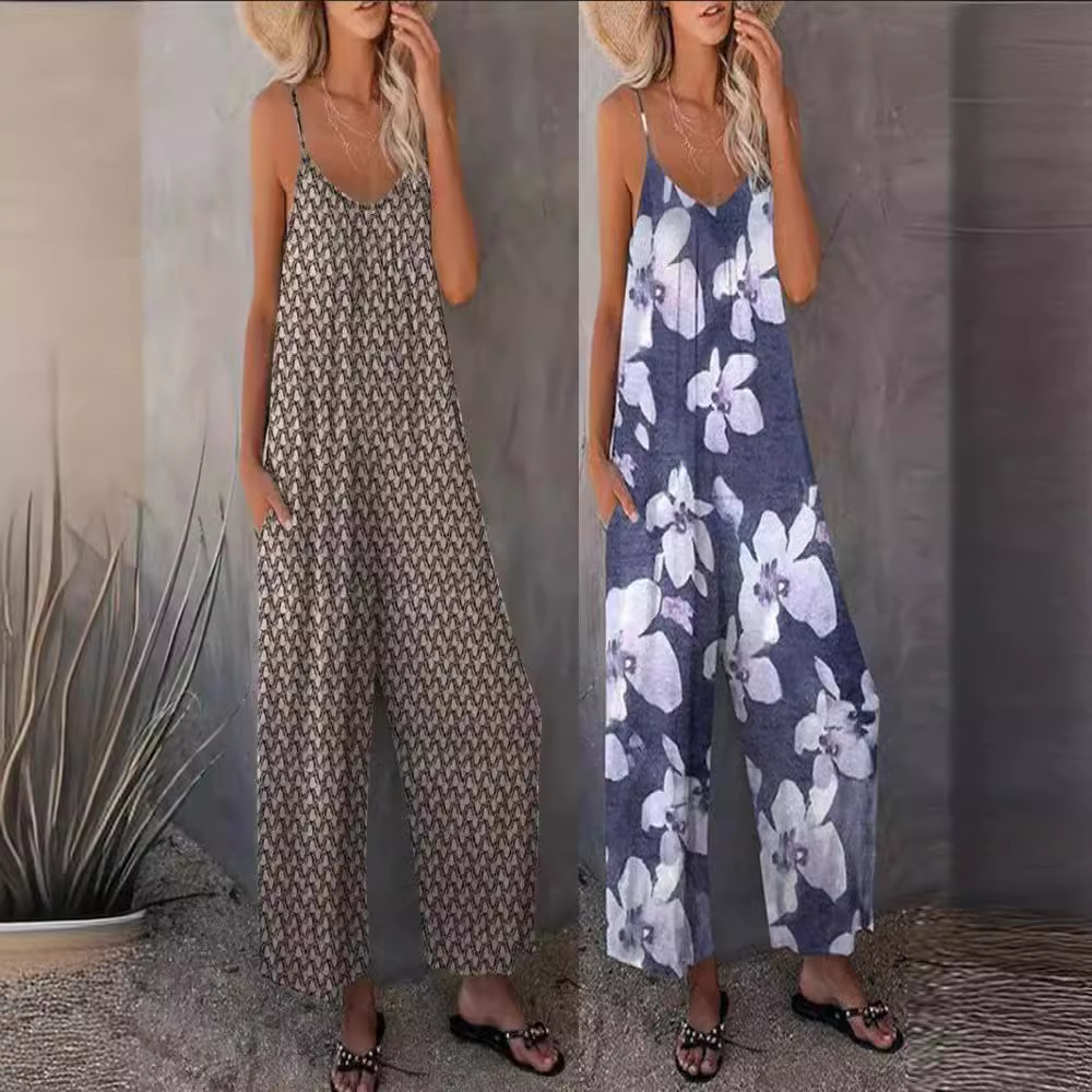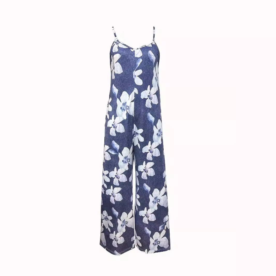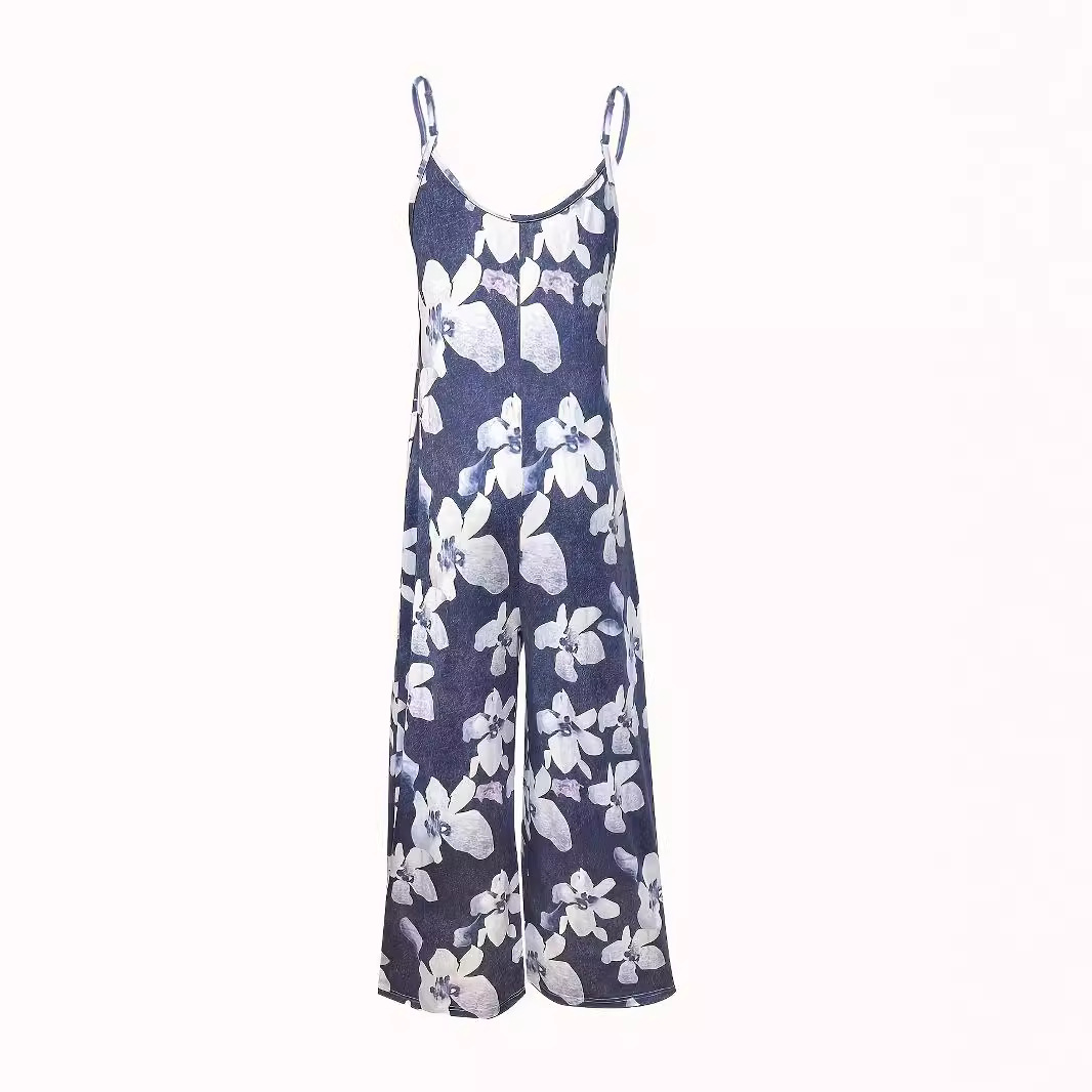 | nameOriginal | Plus size 2024 European and American cross-border spring and summer new women's printed sexy suspenders loose wide-leg jumpsuit trousers |