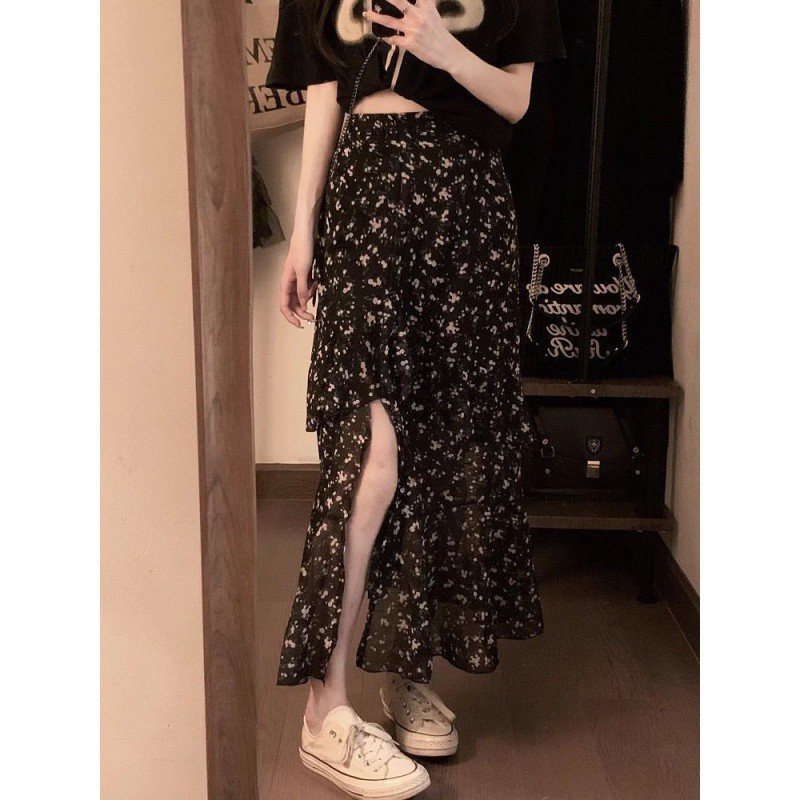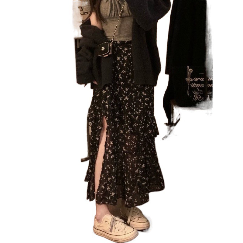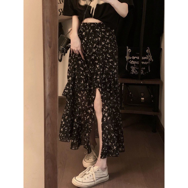 | nameOriginal | plus size 2024 New Floral Ruffled Slit Mid-length Skirt chubby girl Summer Ruffled A- line Skirt for Women |