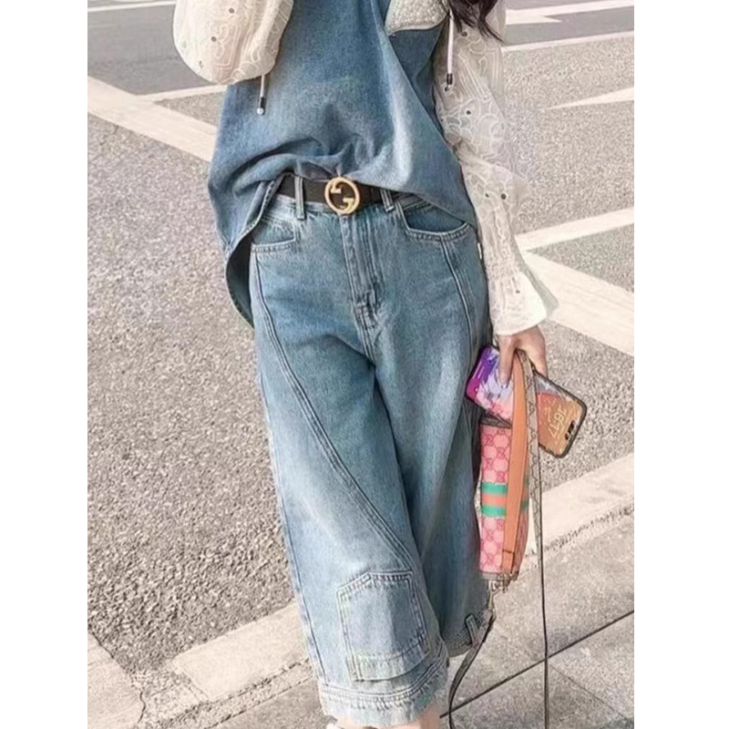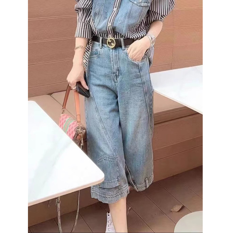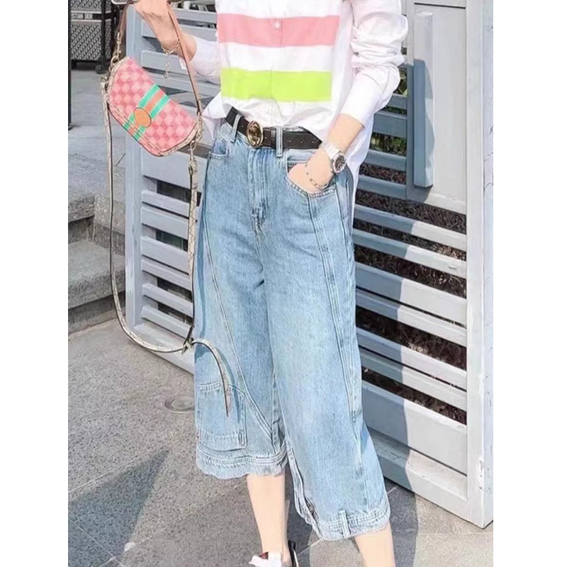 plus size 2024 Summer Thin High Waist Loose Straight Jeans Women's chubby girl Hip Covering Slim Wide Leg Cropped Pants
