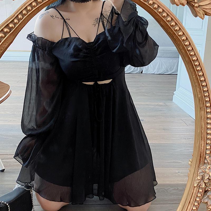 | nameOriginal | plus size 300 Jin Women's Loose Slim Shoulder Sexy Chiffon dress Chubby 240 Age-reducing Belly Covering Tulle Skirt |