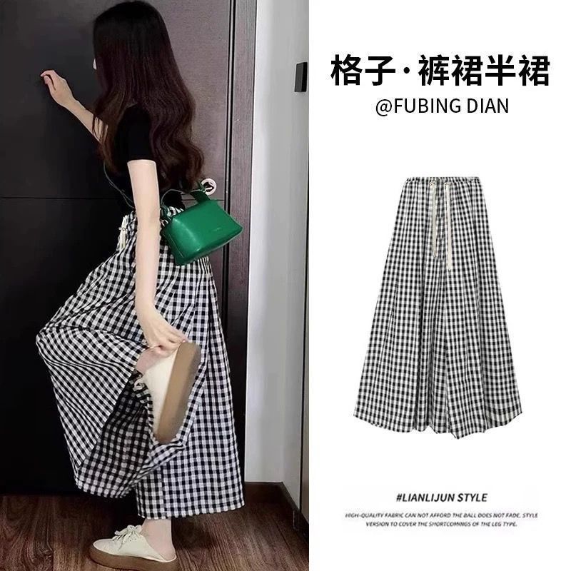 | nameOriginal | plus size 42.50 kg-150.00 kg chubby girl Plaid Pant Skirt Women's Summer Thin High Waist All-match Slimming Cropped Culottes Women |