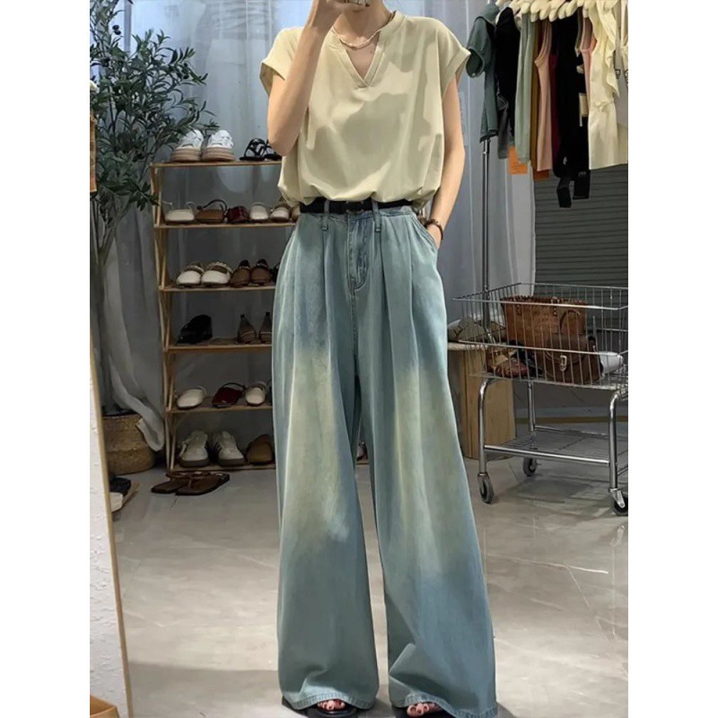 | nameOriginal | plus size American Style High Street Wide-leg Jeans Women's Summer Fashionable Design Loose-fit High Waist Slimming Pants |
