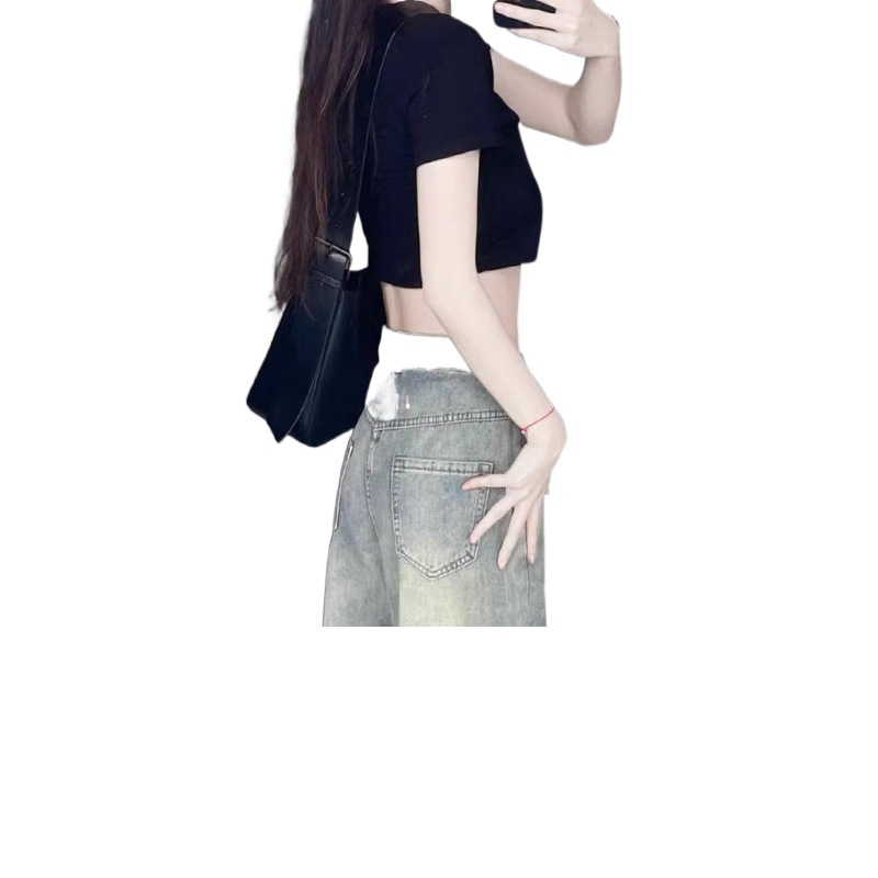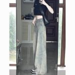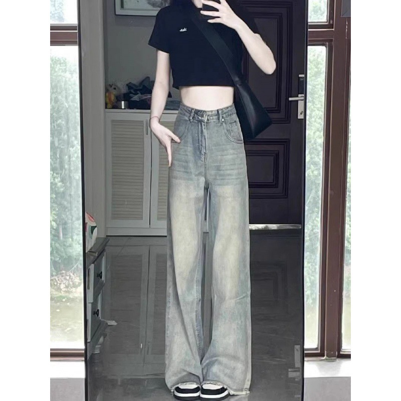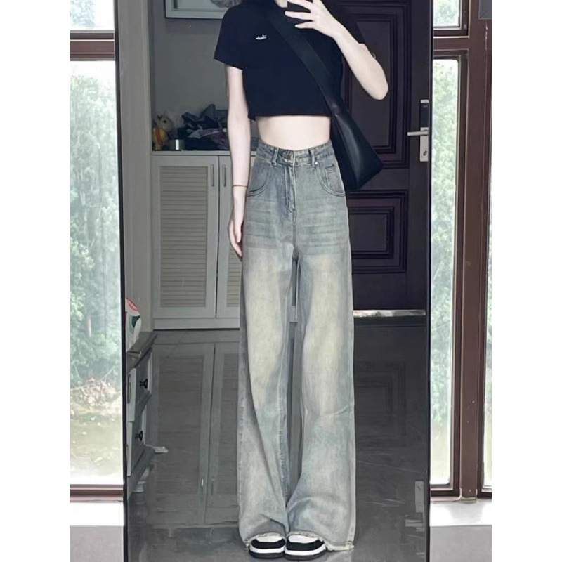 | nameOriginal | plus size American Style Retro Straight Jeans Women's Summer High Waist Slimming Old Loose Dipped Wide Leg Trousers |