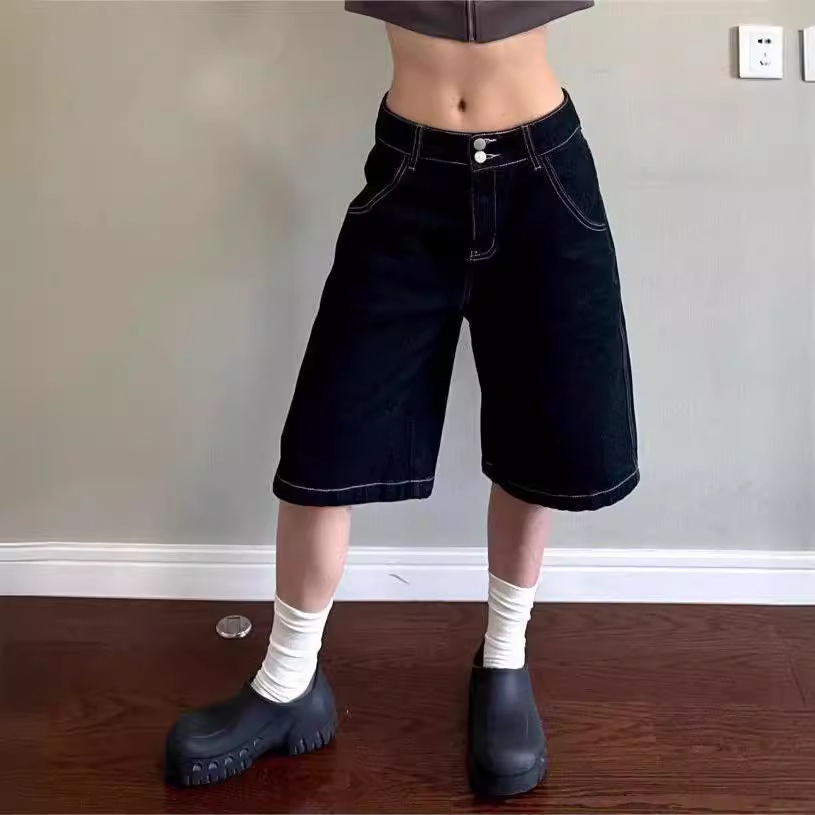 plus size American Style Wide Leg Denim Shorts Women’s Summer New Casual Loose Straight Slim Look High Waist Pants