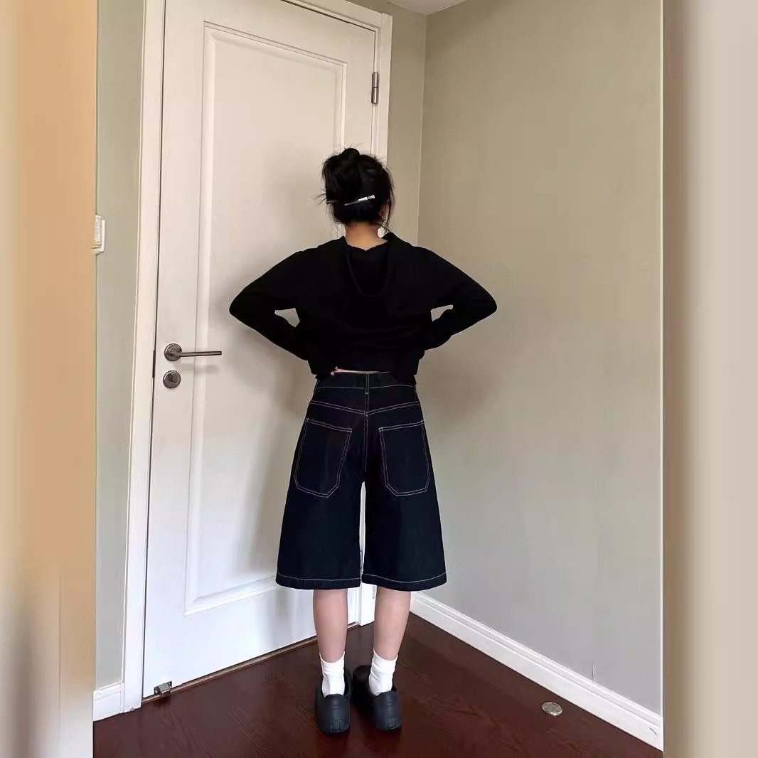 plus size American Style Wide Leg Denim Shorts Women's Summer New Casual Loose Straight Slim Look High Waist Pants