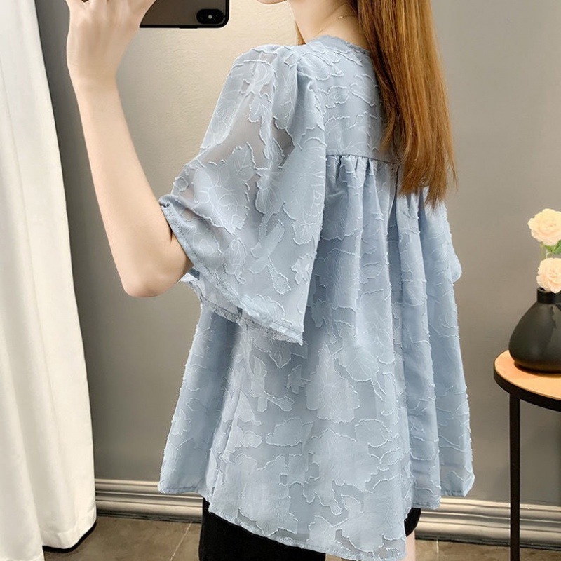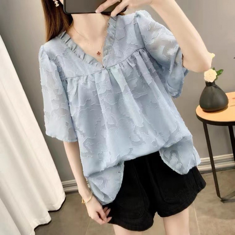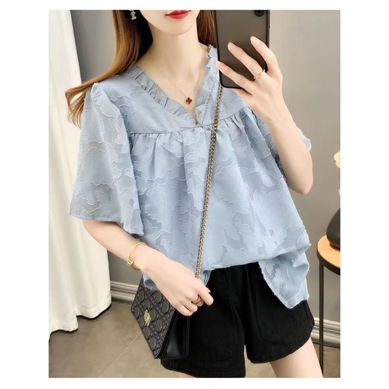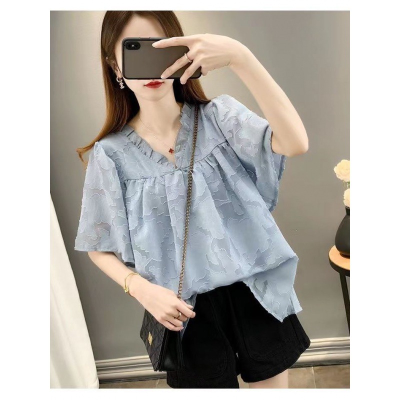 | nameOriginal | plus size Belly Covering Chiffon Shirt Top Design Niche 2024 Summer New chubby girl Slimming Western Style T-shirt for Women |