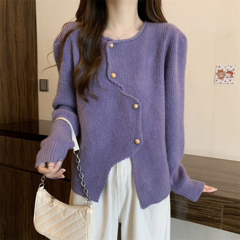 | nameOriginal | Plus size belly covering irregular cardigan long-sleeved sweater women's autumn and winter fat sister loose slimming lazy style sweater |