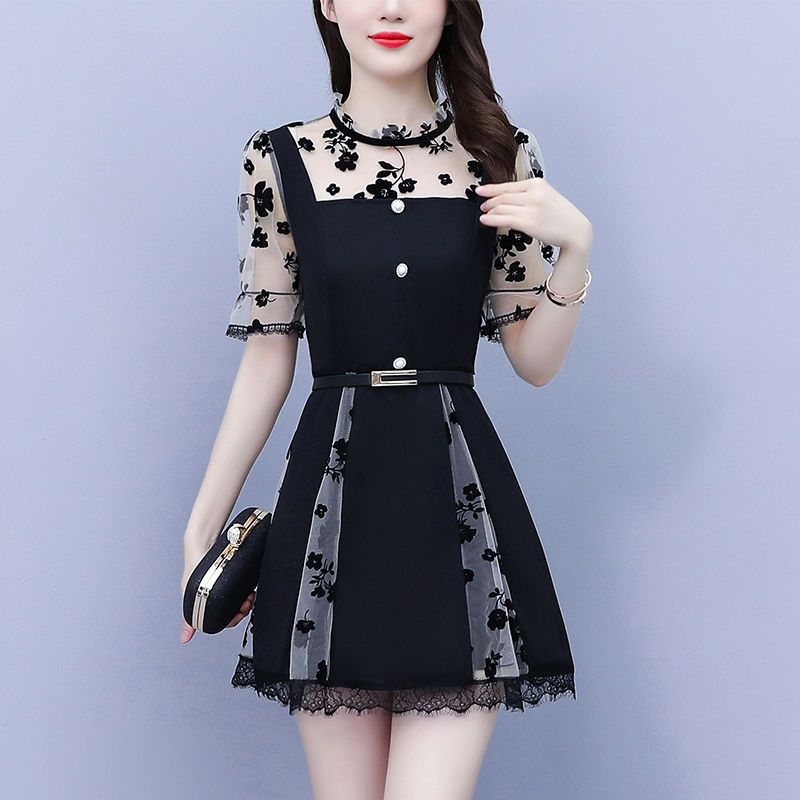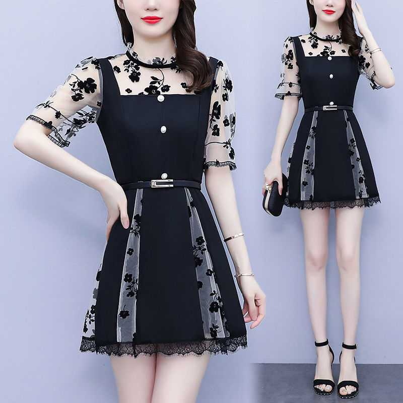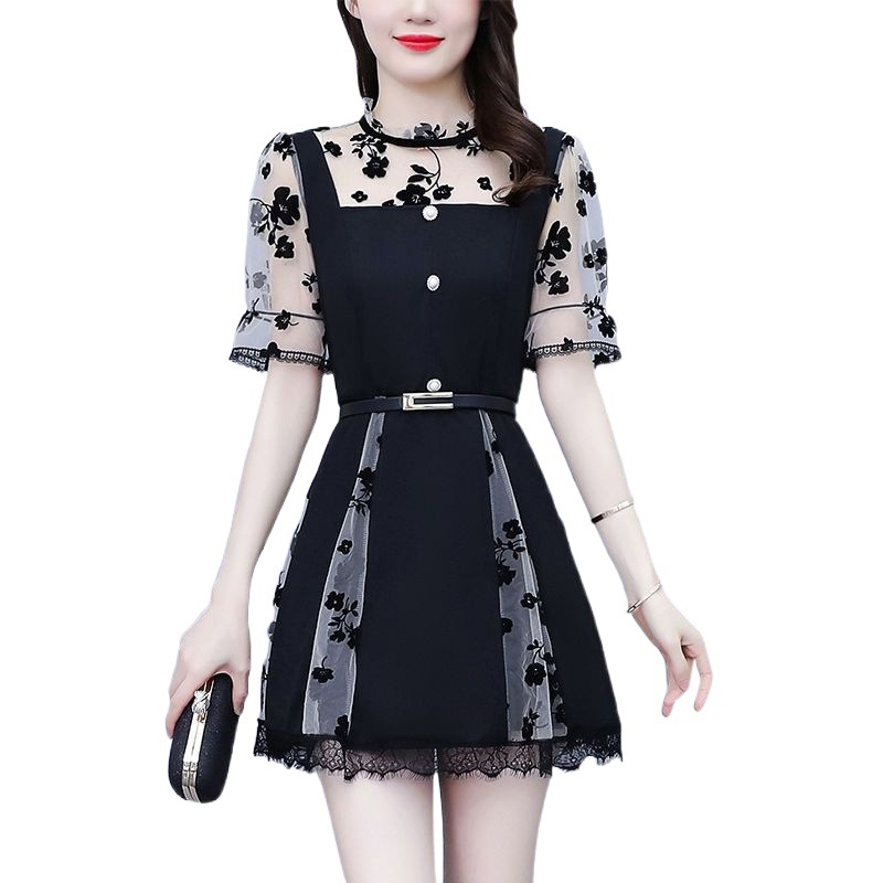 plus size Belly-Covering Mesh Stitching Slim Top Summer 2024 New Fat Loose Meat-Covering Mid-Long Small Shirt for Women