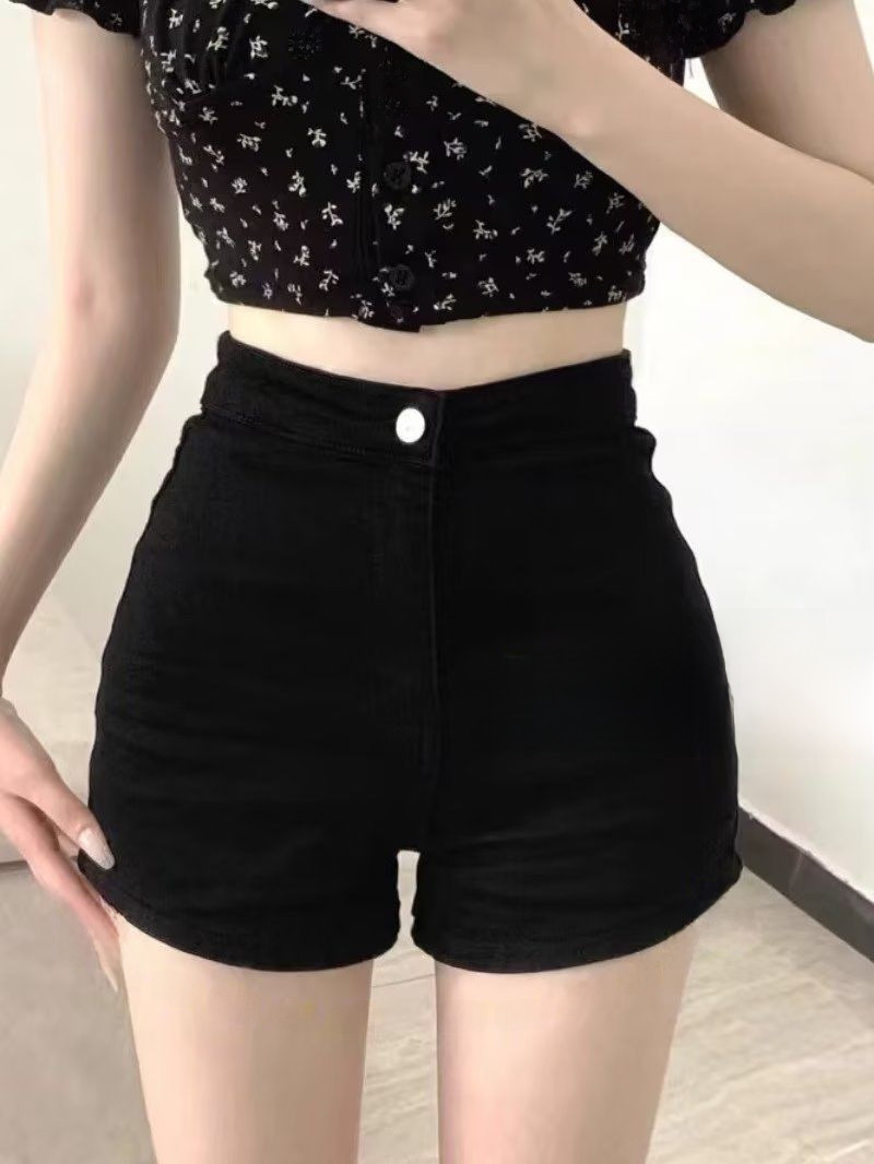 | nameOriginal | Plus size black all-match Denim shorts women's chubby girl summer hot girl high waist tight stretch slimming A- line hot pants |