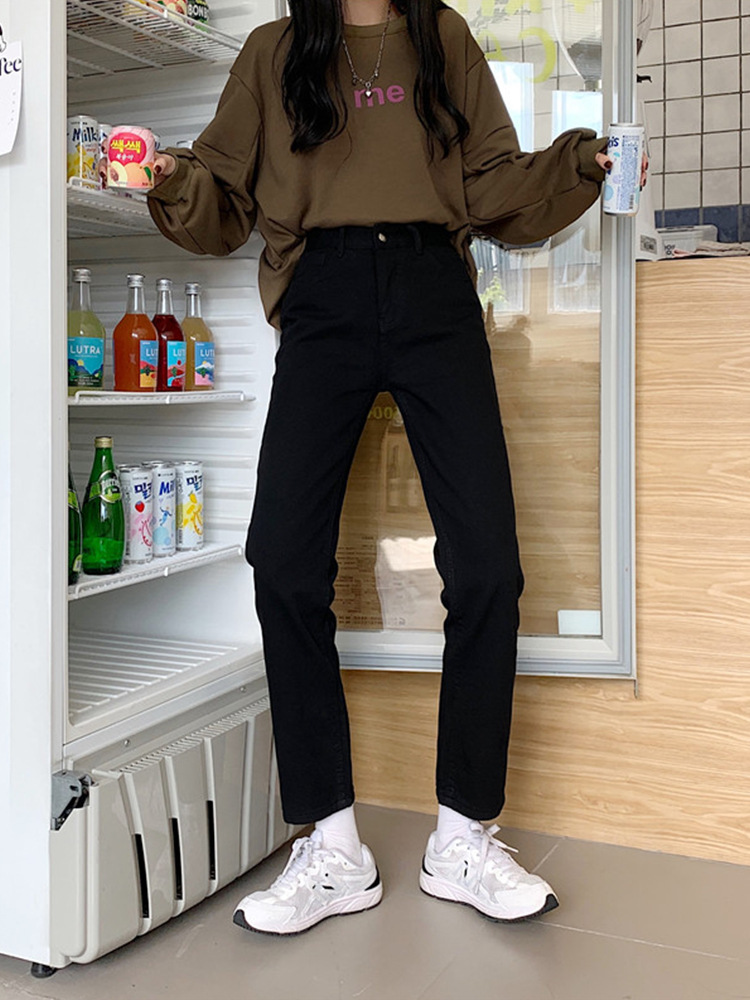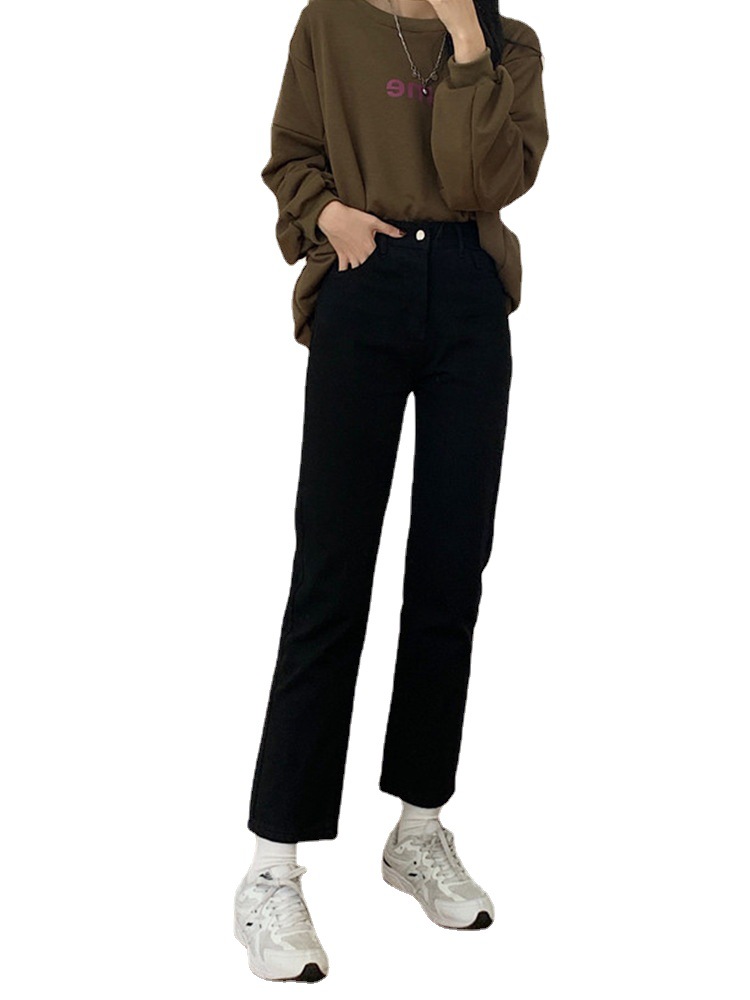| nameOriginal | Plus size black straight jeans for women chubby girl spring new style pipe pants high waist stretch slimming retro cropped pants |