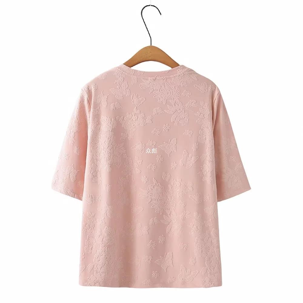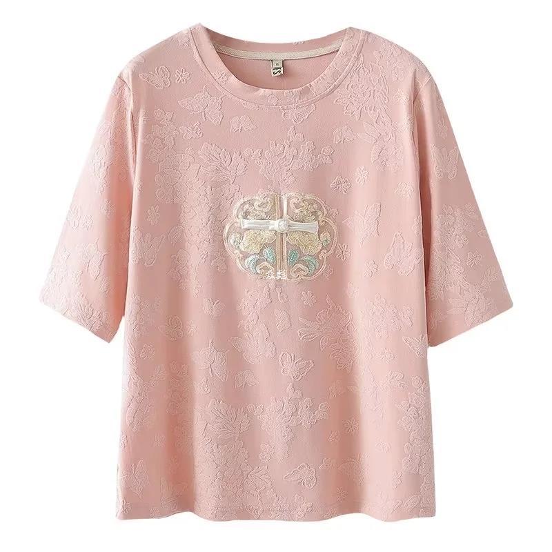 | nameOriginal | plus size Chinese Style Mid-Sleeve T-Shirt New 2024 Summer Loose Jacquard Short-Sleeved Mother Women's Top |