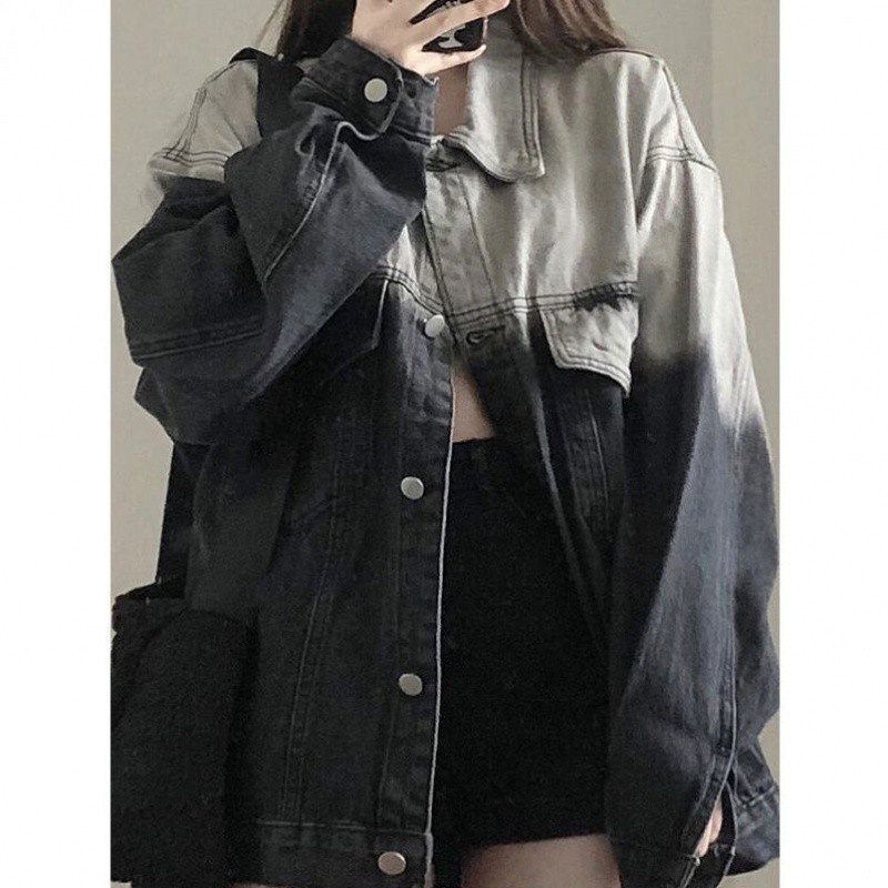 plus size Chubby American Retro Denim Jacket Women’s Spring and Autumn Design Sense Flesh Covering Slim Gradient Fried Street Jacket Top