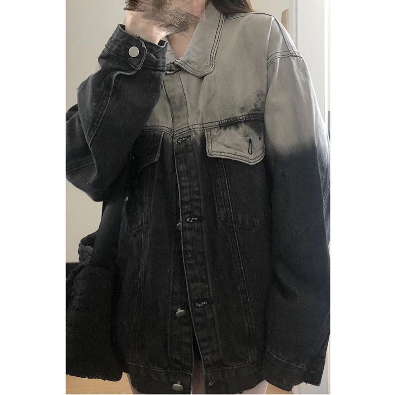 plus size Chubby American Retro Denim Jacket Women's Spring and Autumn Design Sense Flesh Covering Slim Gradient Fried Street Jacket Top