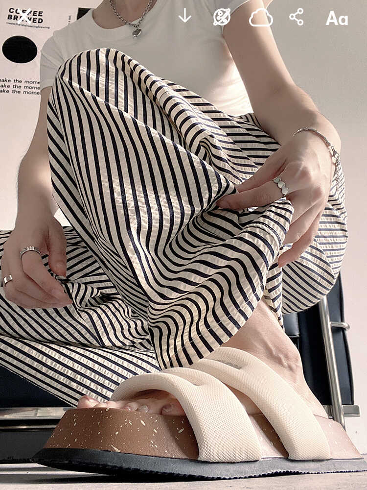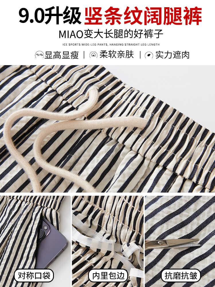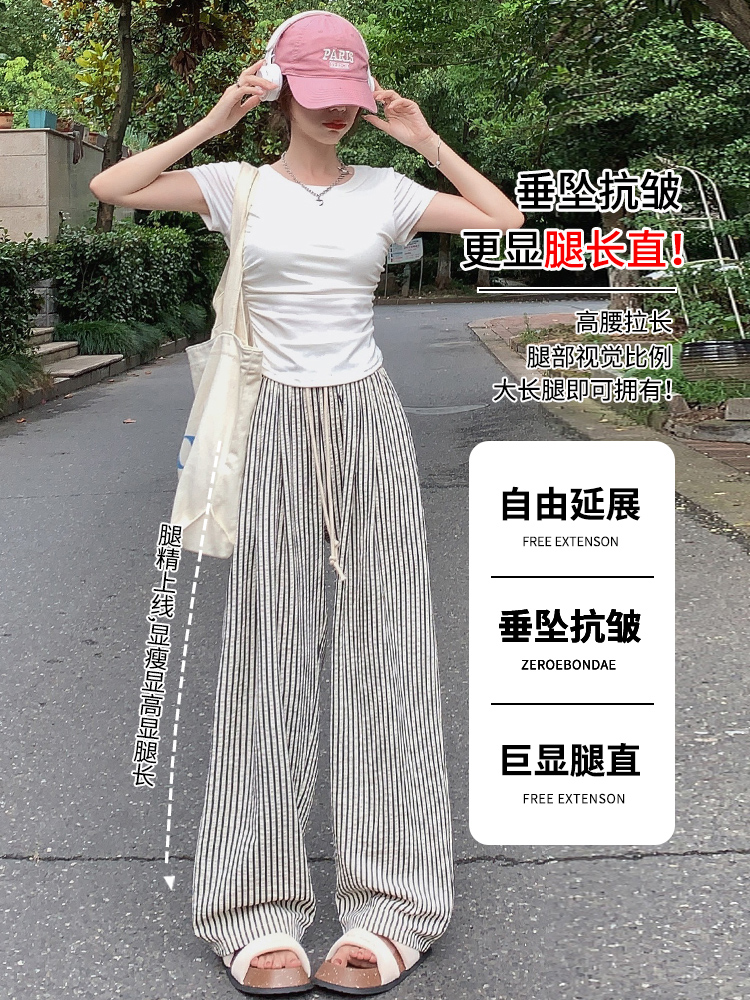 | nameOriginal | plus size chubby girl Black and White Striped Wide-leg Pants Women's Summer New High Waist Dosing Loose Straight Slimming Casual Trousers |