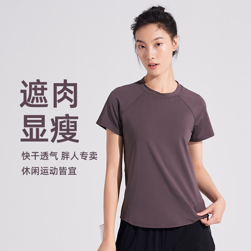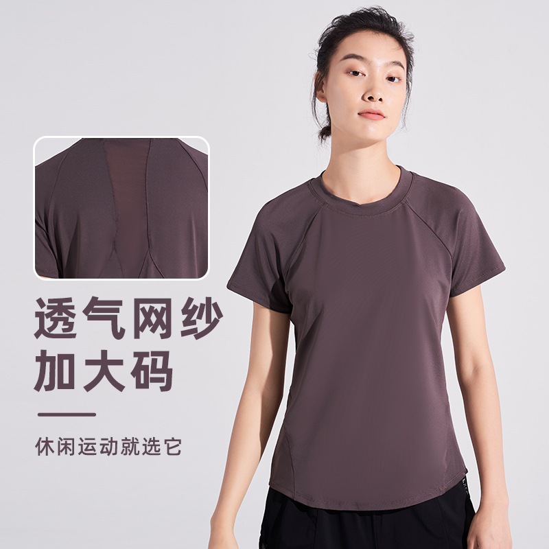 | nameOriginal | Plus size chubby girl casual sports T-shirt summer short sleeve slim fit comfortable yoga clothes women's mesh quick-drying loose top |