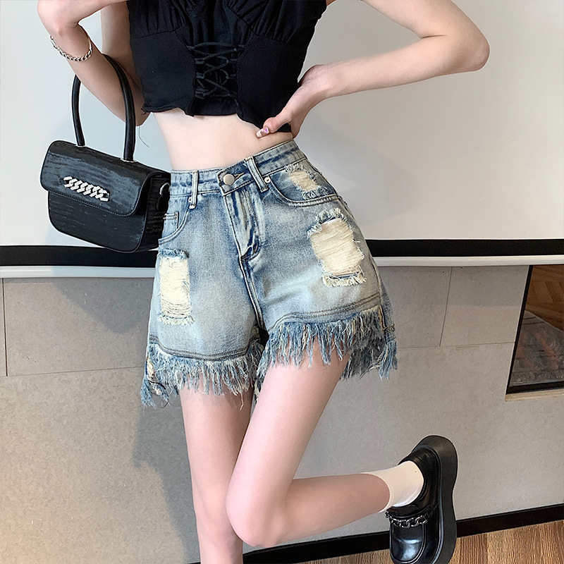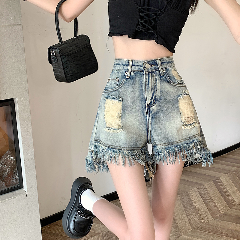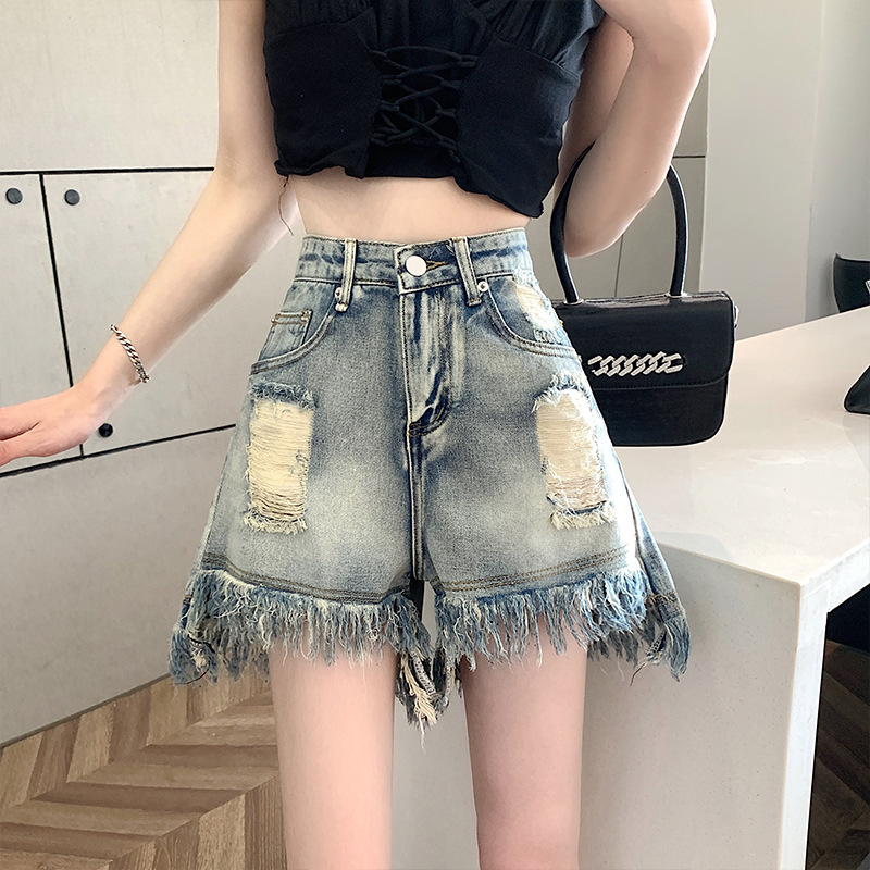 | nameOriginal | plus size chubby girl High Waist Denim Shorts Women's 2024 Summer New Loose Slimming Straight Pants A- line Wide-leg Hot Pants |