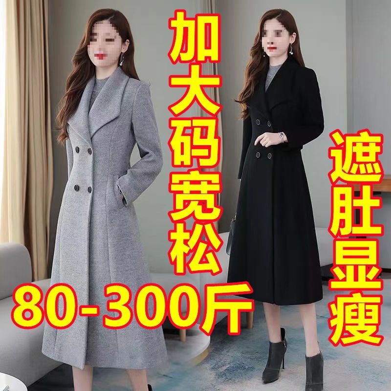 plus size Chubby Sister Loose Skinny Coat Women’s 2022 Autumn and Winter New Over-the-Knee Warm Wool Long Coat Women’s Fashion