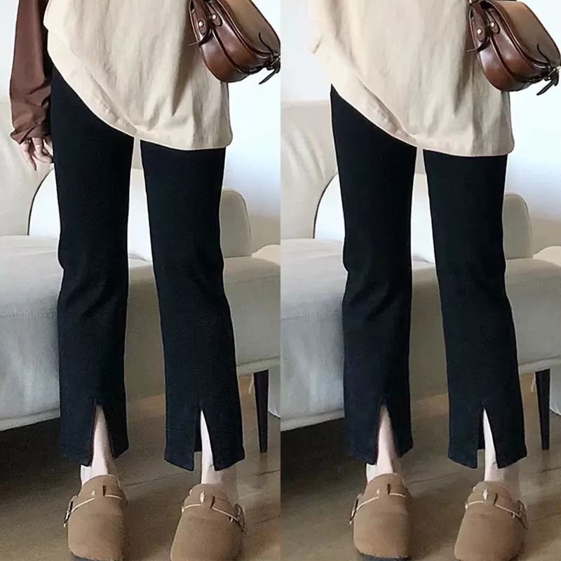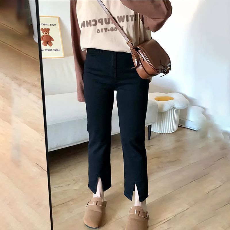| nameOriginal | plus size Chubby Sister mm Autumn and Winter Thick and Thin Thigh Split Jeans Women's Black Straight Pants Small Ankle-length Pants |