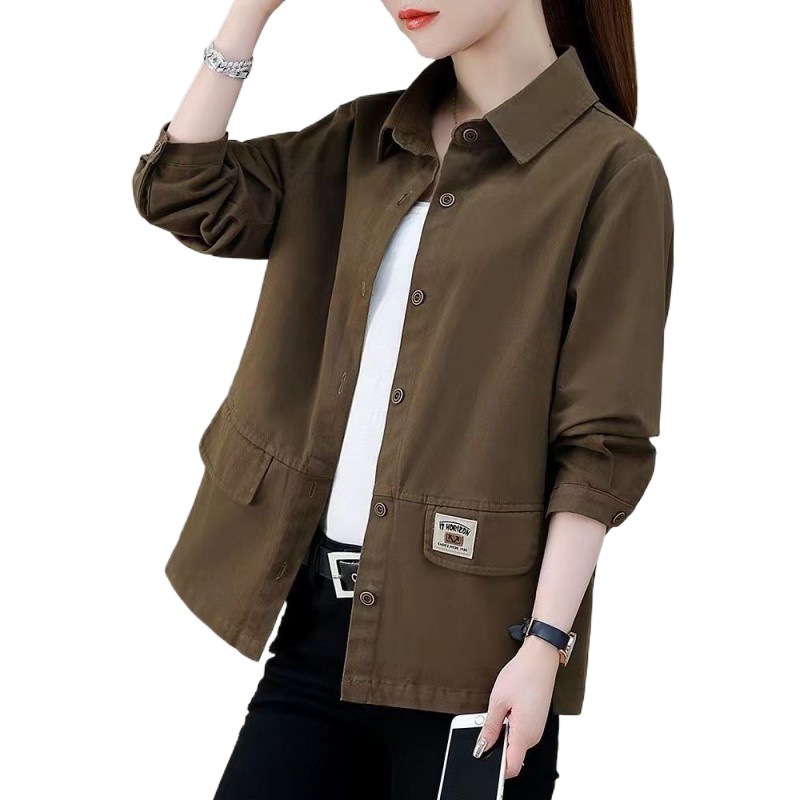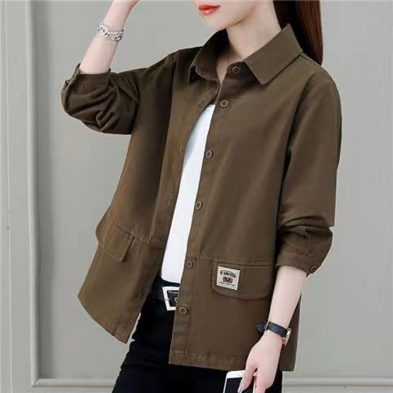 plus size coat long sleeve women's spring 2024 new loose lapel frock shirt thin spring and autumn top