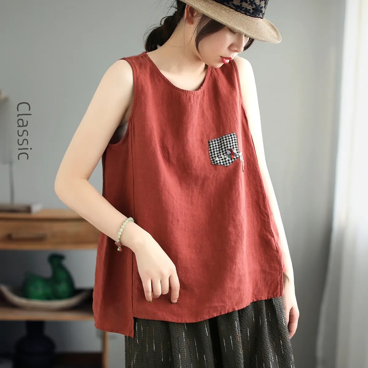 Plus size cotton and linen new camisole women's wide loose summer versatile sleeveless solid color retro bottoming top outer wear inner wear