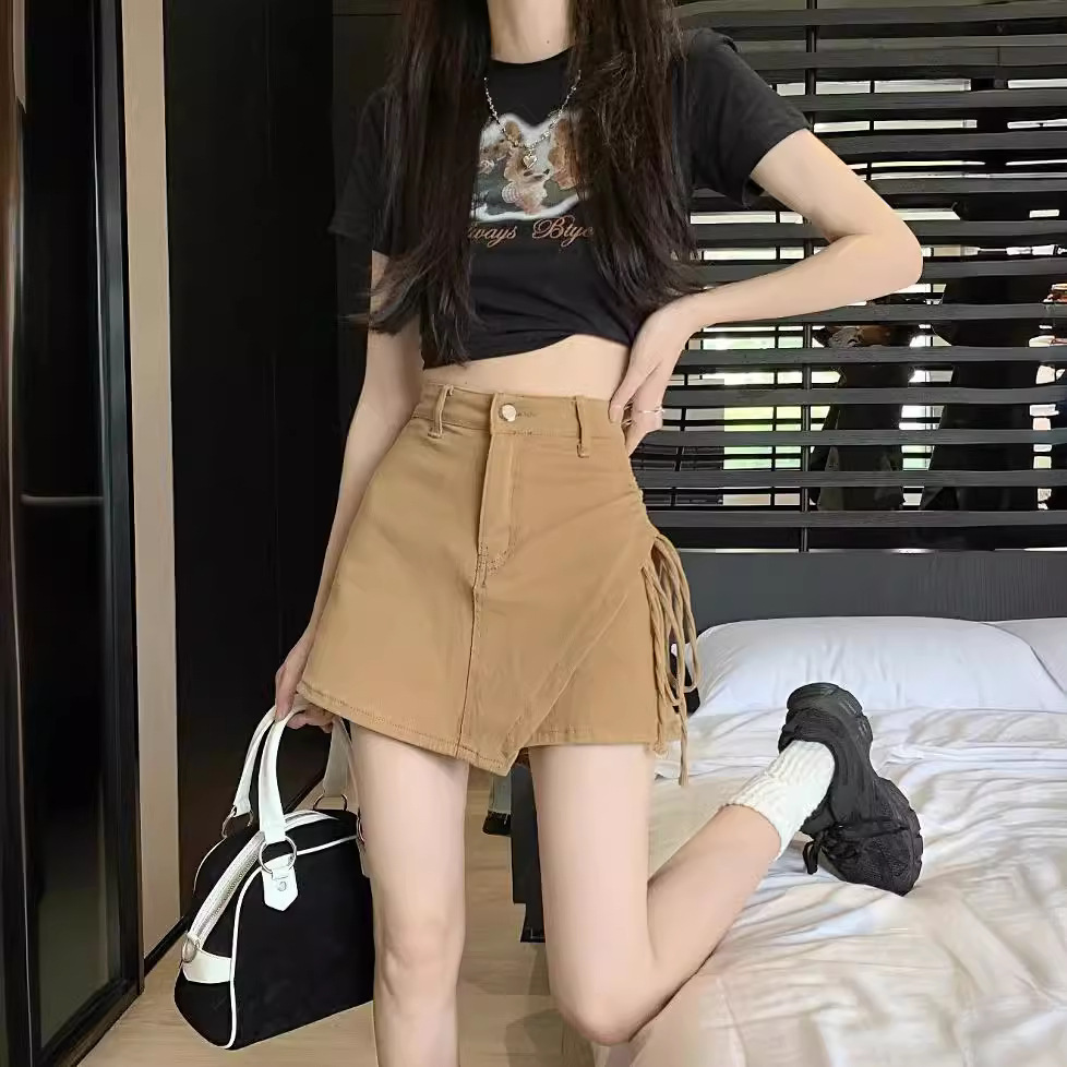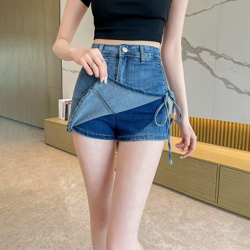 | nameOriginal | plus size Denim Skirt 2024 Summer New Casual Niche Design Drawstring All-match Slim-fit Elastic Hot Short Pants |