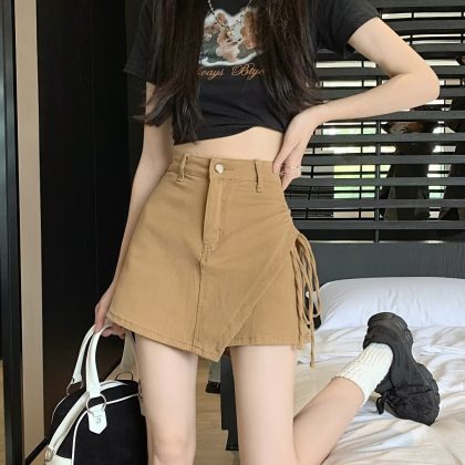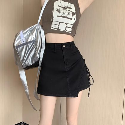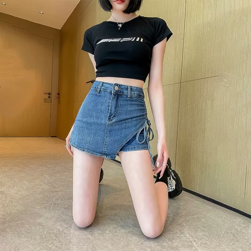 | nameOriginal | plus size Denim Skirt 2024 Summer New Casual Niche Design Drawstring All-match Slim-fit Elastic Hot Short Pants |
