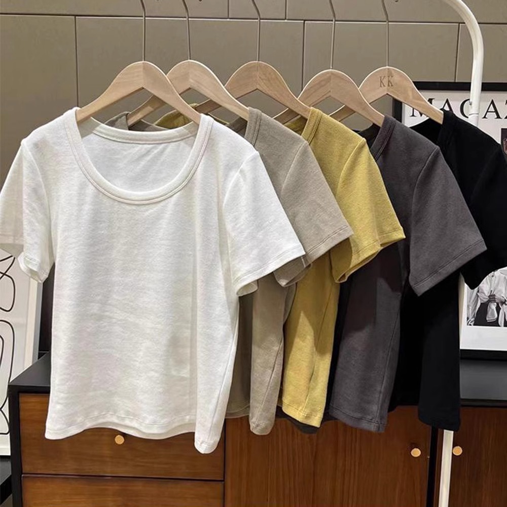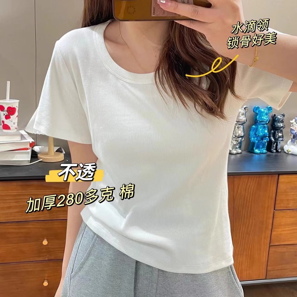 | nameOriginal | plus size Design Sense U Collar Shoulder White Short-sleeved T-shirt Women's Summer New Style Loose Slimming Top for Chubby Girls |
