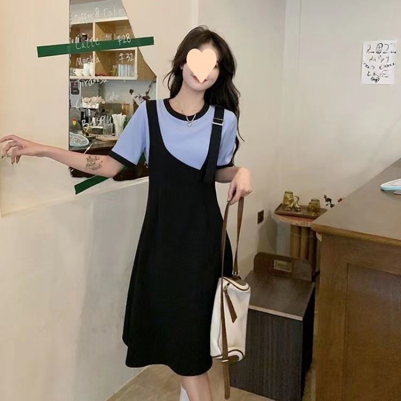 | nameOriginal | plus size Design Stitching Fake Two-piece dress Women's Summer Chubby Flesh-Covering Slimming French High-end Style Elegant Skirt |