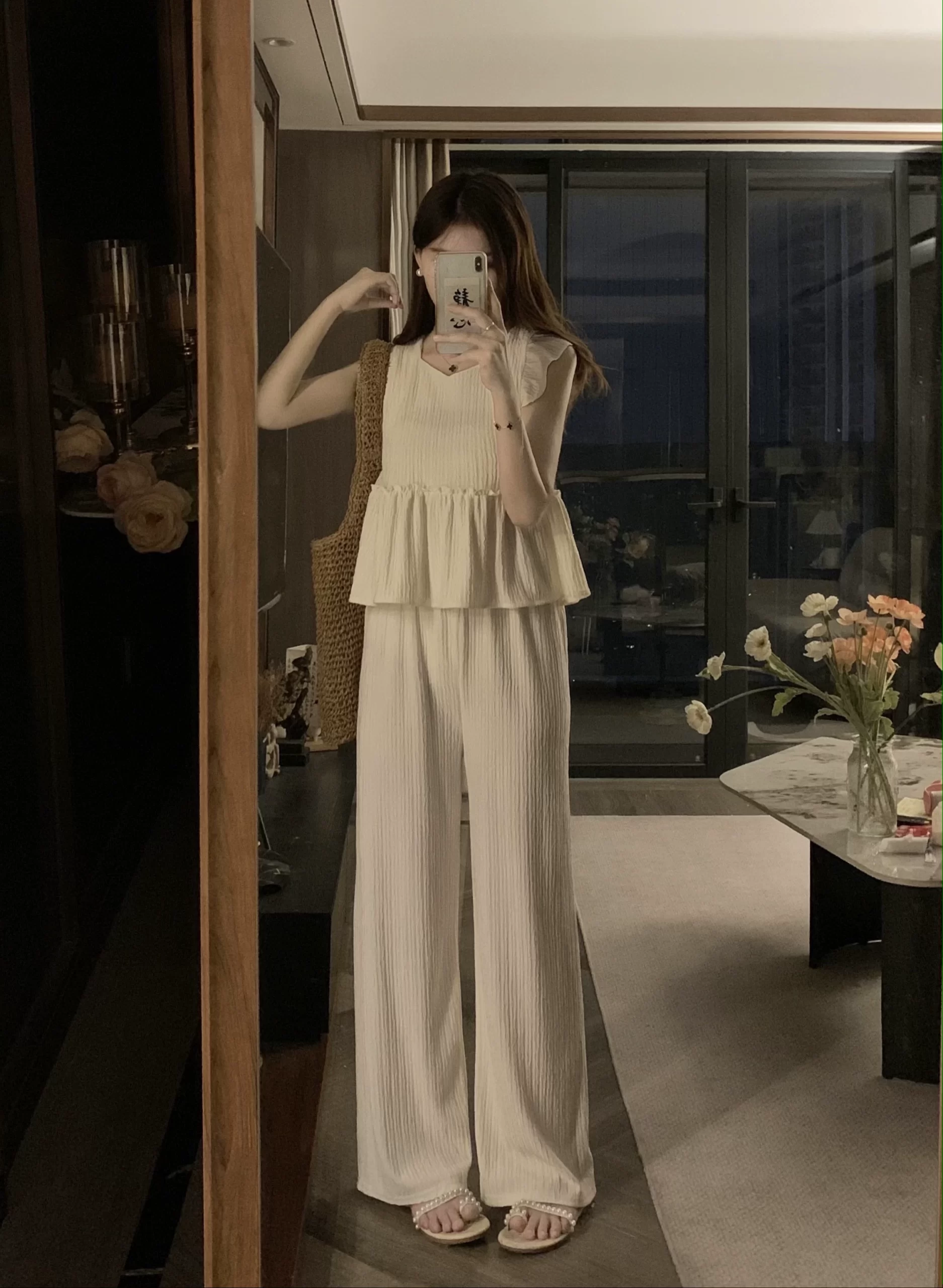| nameOriginal | Plus size fashion suit women's summer flying sleeve short loose top fat MM straight wide leg casual pants two-piece set |