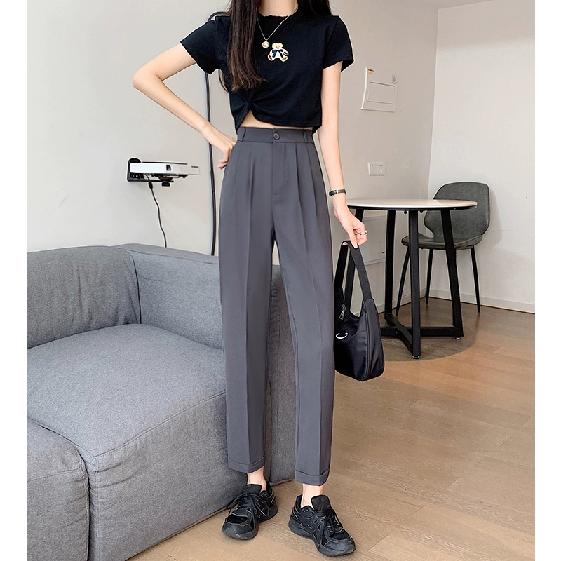 | nameOriginal | Plus size fashionable black high-waisted fat MM nine-point casual pants |