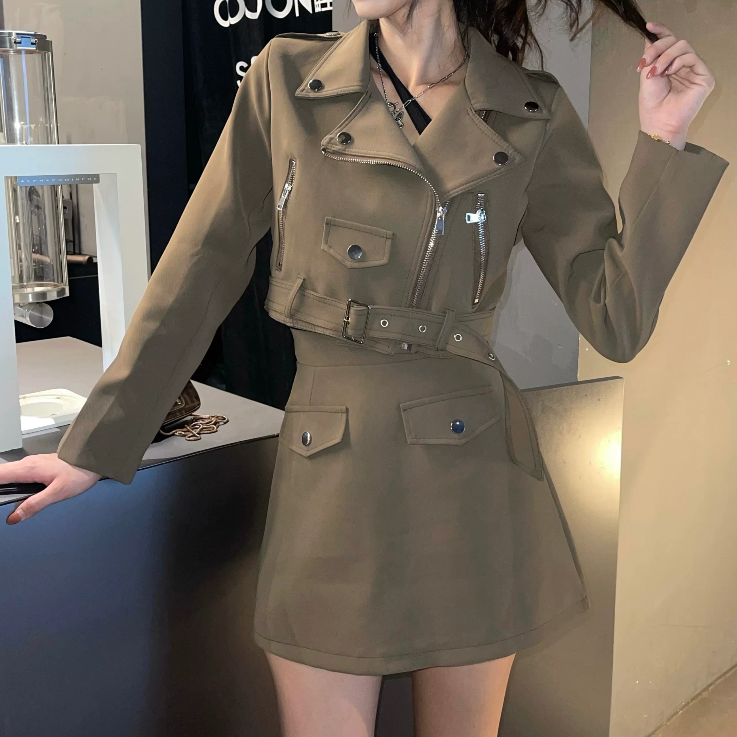 | nameOriginal | Plus size fat girl long sleeves loose flesh-covering short skirt motorcycle suit |