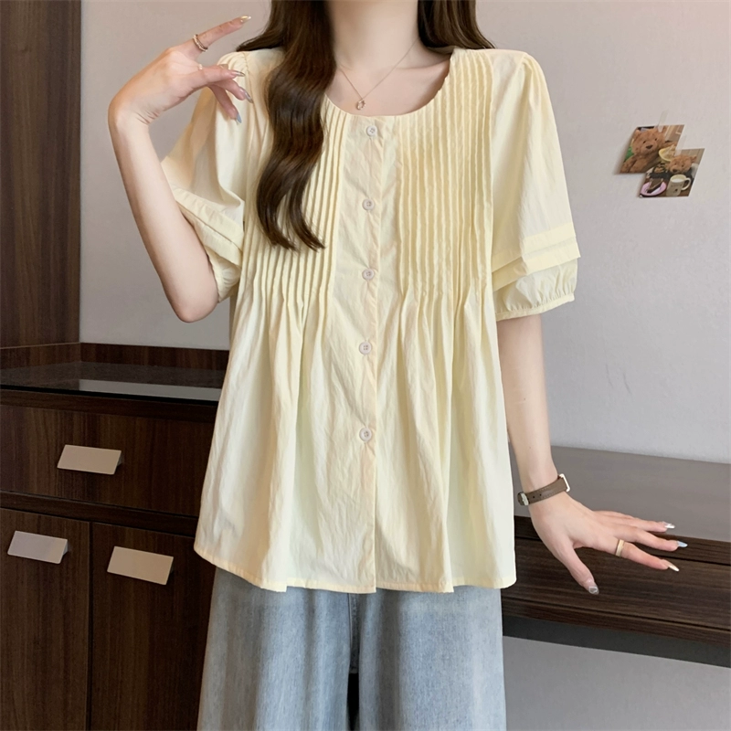 | nameOriginal | Plus size fat girl loose shirt round neck casual short sleeves |