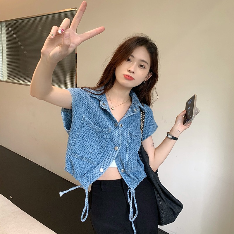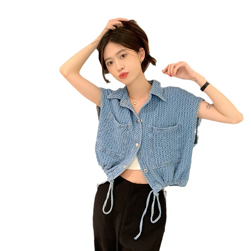| nameOriginal | Plus size fat girl mm autumn design lapel blue Denim vest women's coat Korean style loose outer vest |