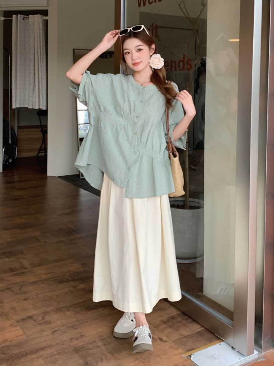 | nameOriginal | Plus size fat mm covers the belly and hides the flesh, high waist casual short sleeves |
