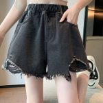 | nameOriginal | Plus size fat mm elastic waist wide leg raw edge denim shorts |