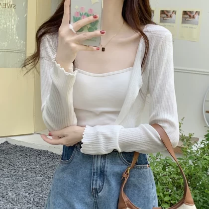 Plus size fat mm ice silk cardigan worn with slimming sun protection clothing