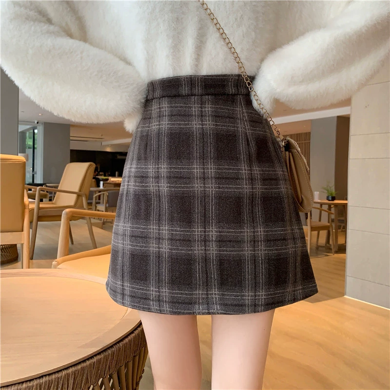 | nameOriginal | Plus size fat mm retro brown plaid summer skirt |