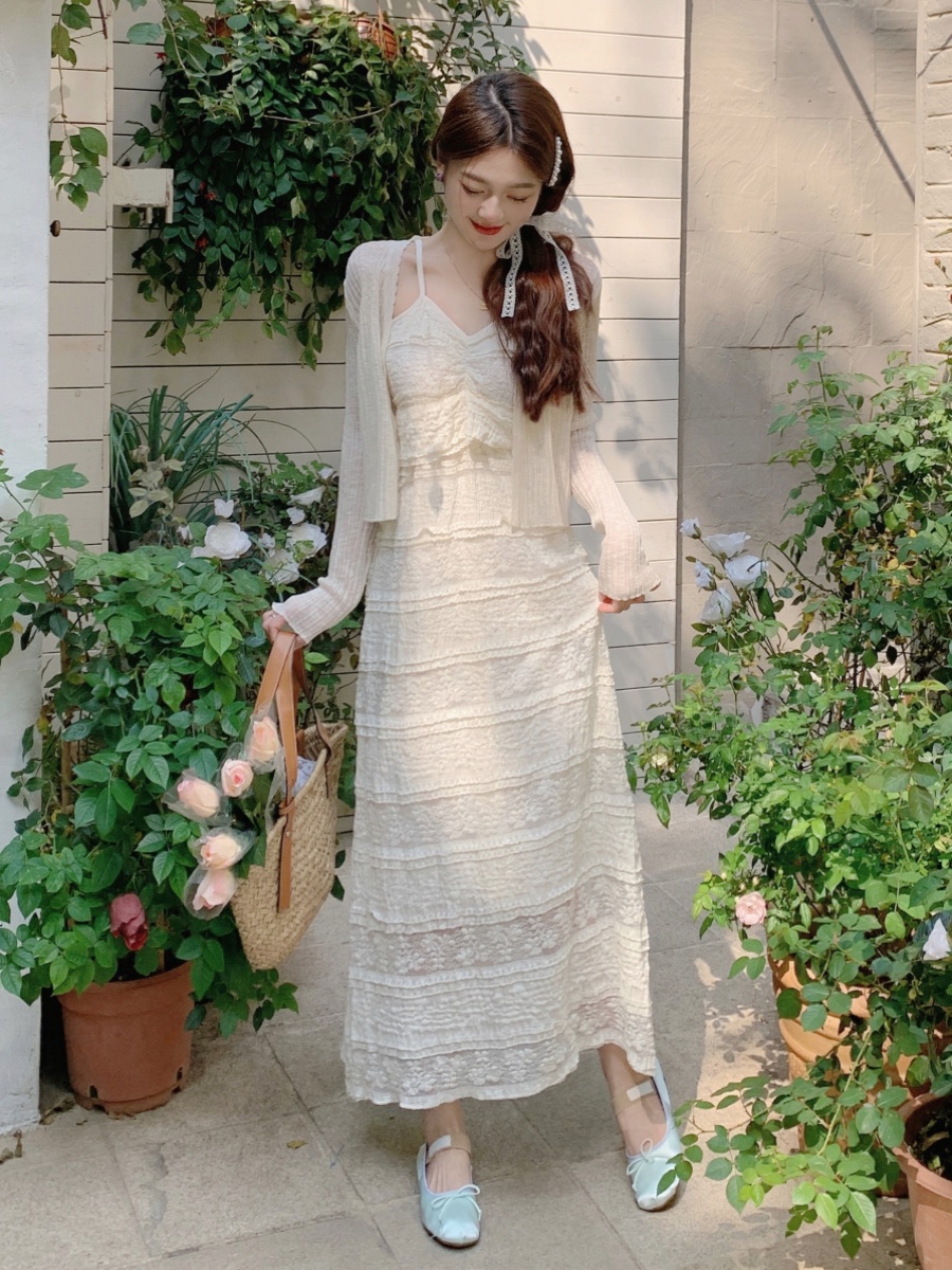 Plus size fat mm suspender skirt women’s sun protection lace