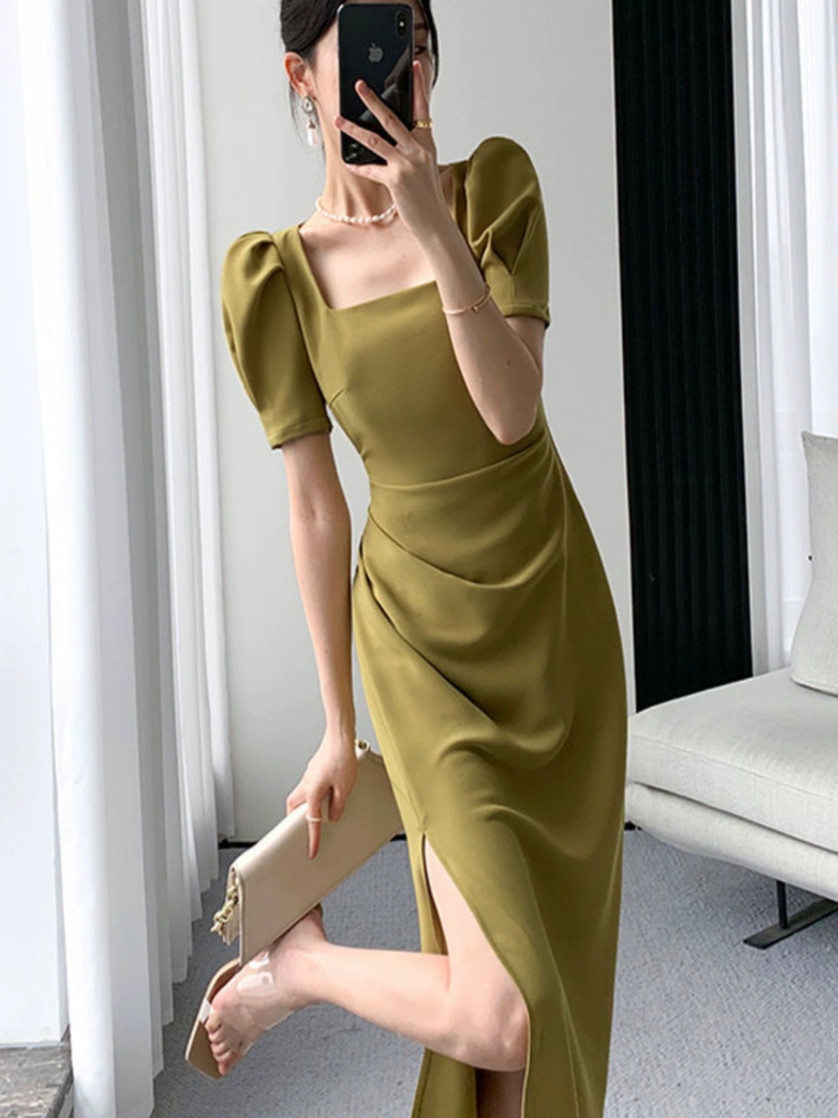| nameOriginal | Plus size fat mm temperament slim summer new slit skirt |