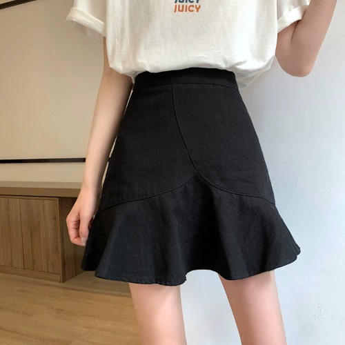 Large -size fat MM white ruffled edge bag buttocks A -line skirt