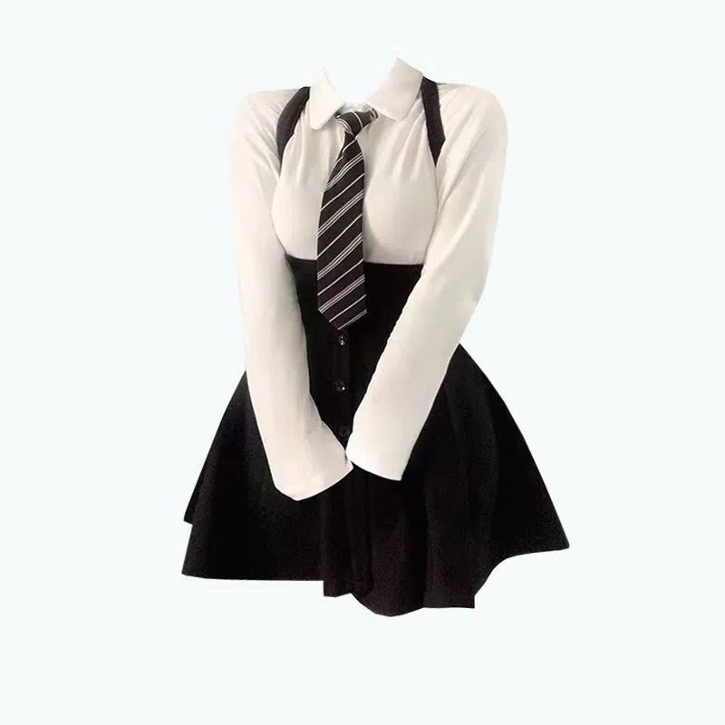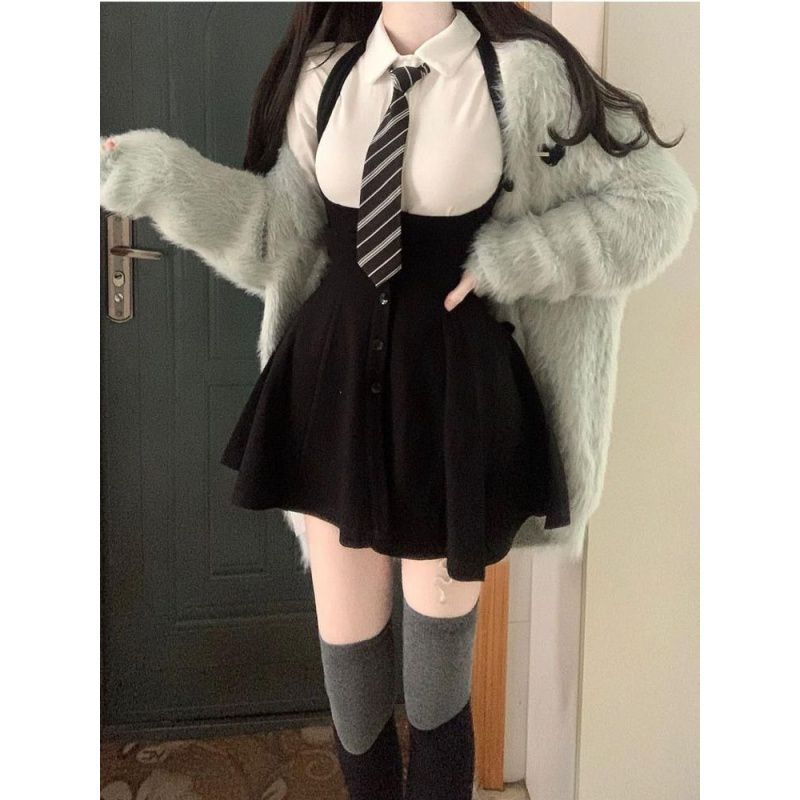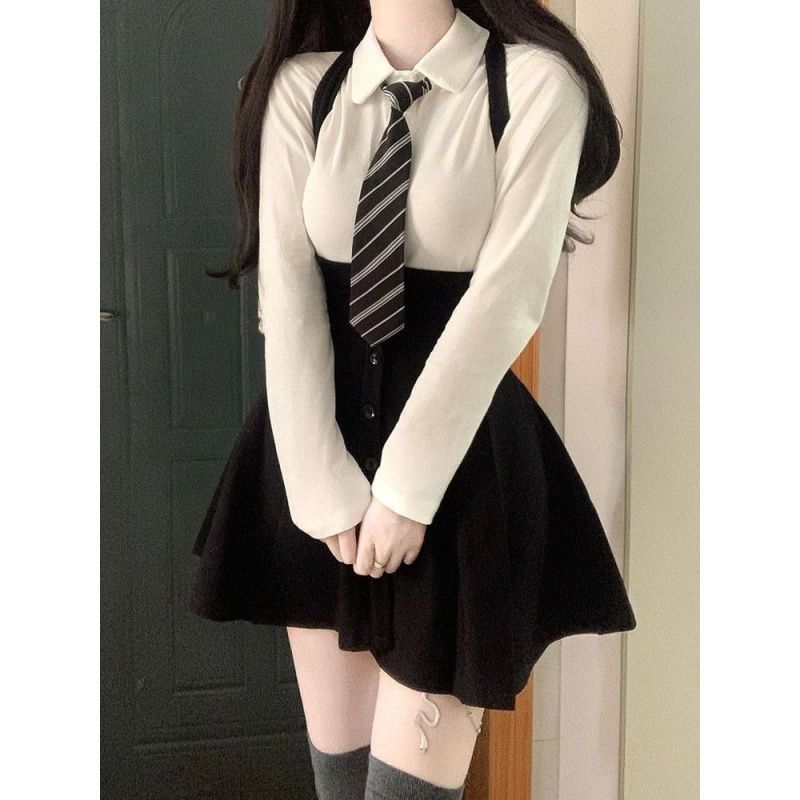 | nameOriginal | plus size Fat Sister College Style JK Tie White Shirt Autumn and Winter Slim Design Sense Hot Girl Strap Skirt suit |
