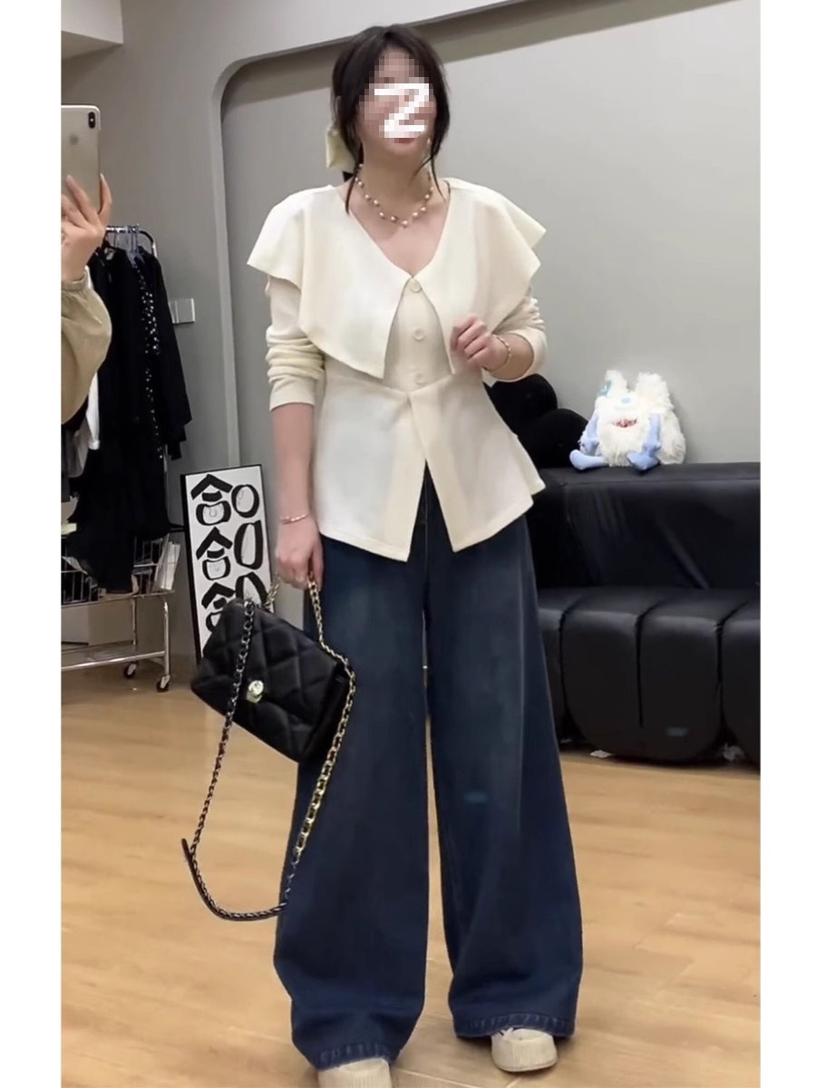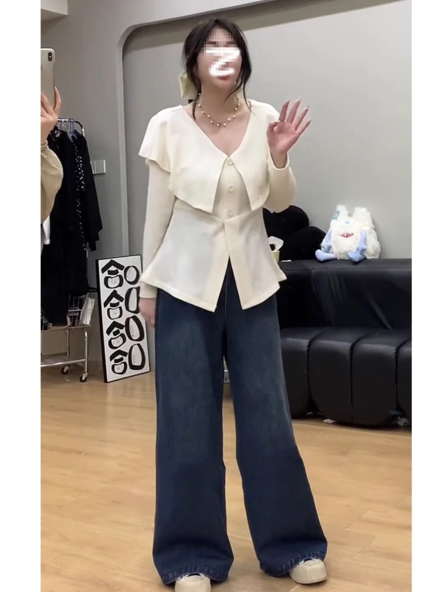 plus size French Elegant High-end Chic Long-sleeved T-shirt Women’s Spring Dress Navy Collar Waist Cover Meat Super-looking Top