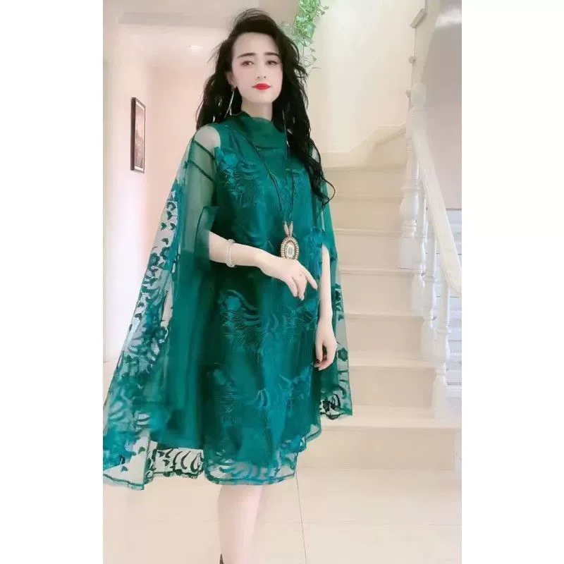 | nameOriginal | Plus size French mesh embroidered shawl dress |