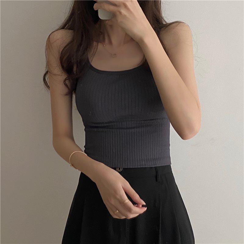 plus size French Style Beautiful Back Camisole Women’s Autumn Suit Inner Base Outer Wear Design Sense Niche Top with Chest Pad