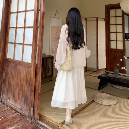 | nameOriginal | Plus size gentle style slightly fat sun protection cardigan chiffon skirt |