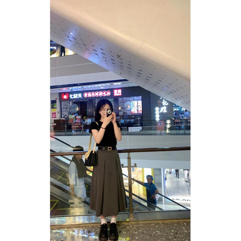 | nameOriginal | plus size Grey High Waist Pleated Umbrella Skirt Skirt Women's Summer Chubby suit Short-sleeved Shoulder Shirt Two-piece Set Fashionable |