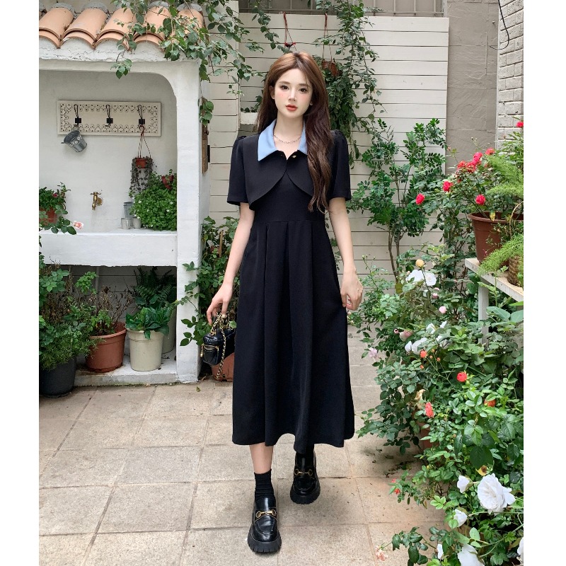 | nameOriginal | Plus size Hepburn style black dress for women in summer for fat girls, high-end French temperament, slim suspender skirt suit |